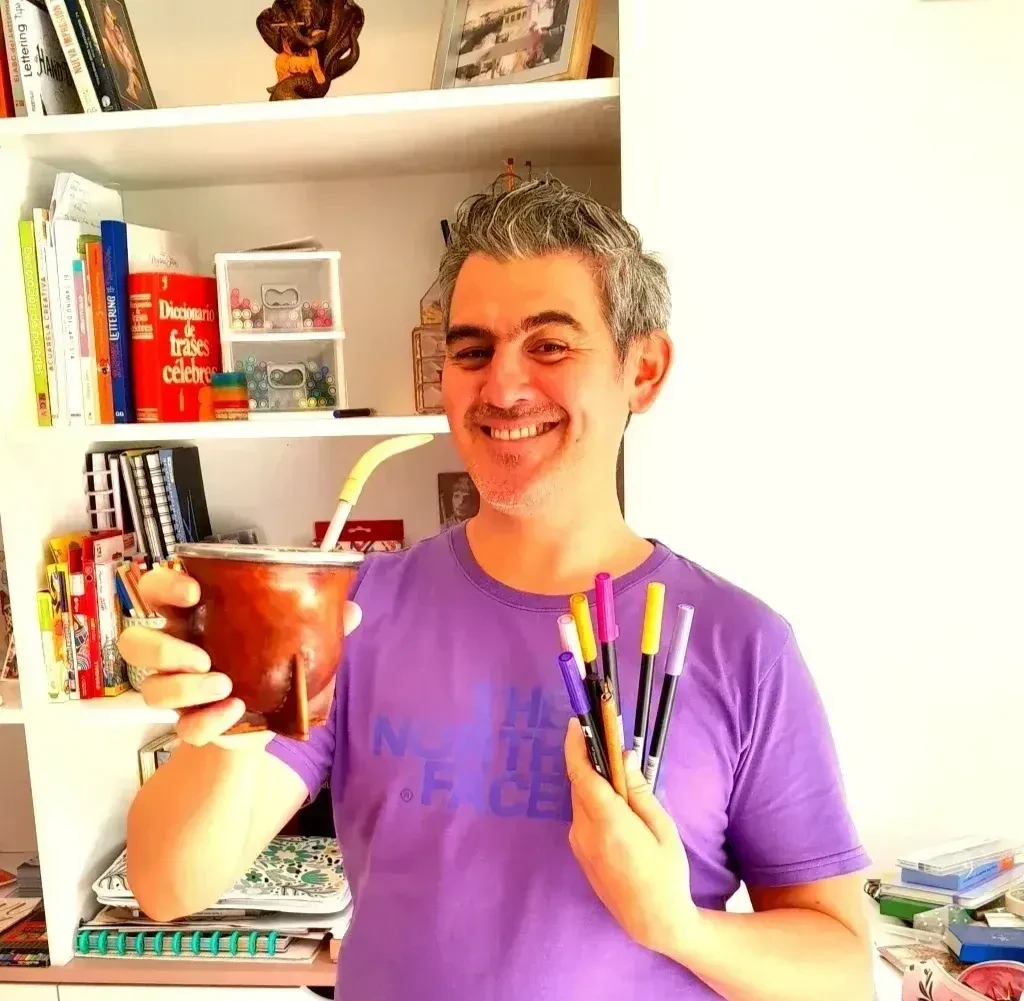 Soy un apasionado del Lettering, el arte de dibujar letras. Empecé a formarme en el año 2021. Y a fines de ese mismo año comencé a dictar talleres de letras.