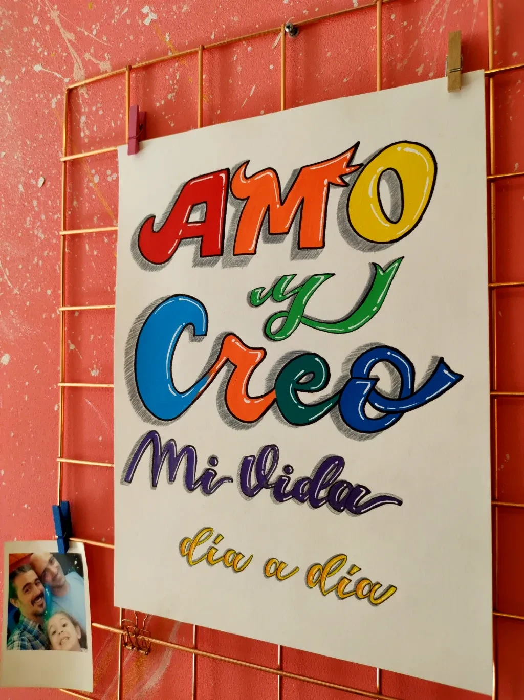 Soy un apasionado del Lettering, el arte de dibujar letras. Empecé a formarme en el año 2021. Y a fines de ese mismo año comencé a dictar talleres de letras.